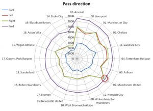 2. Manchester United is unique in making an almost equal number of left/right/forward passes.